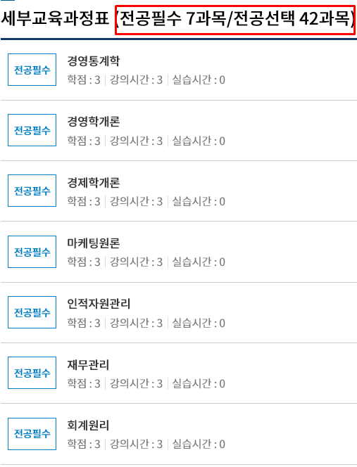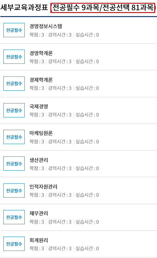 2) 경영학 학사 전공교과목