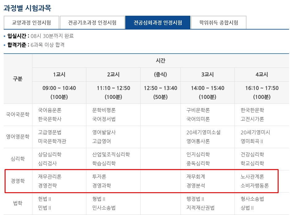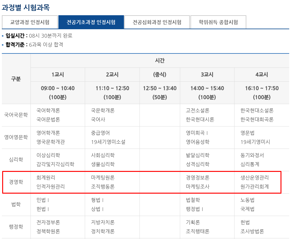 6. 학점은행제 경영학 전공 독학사