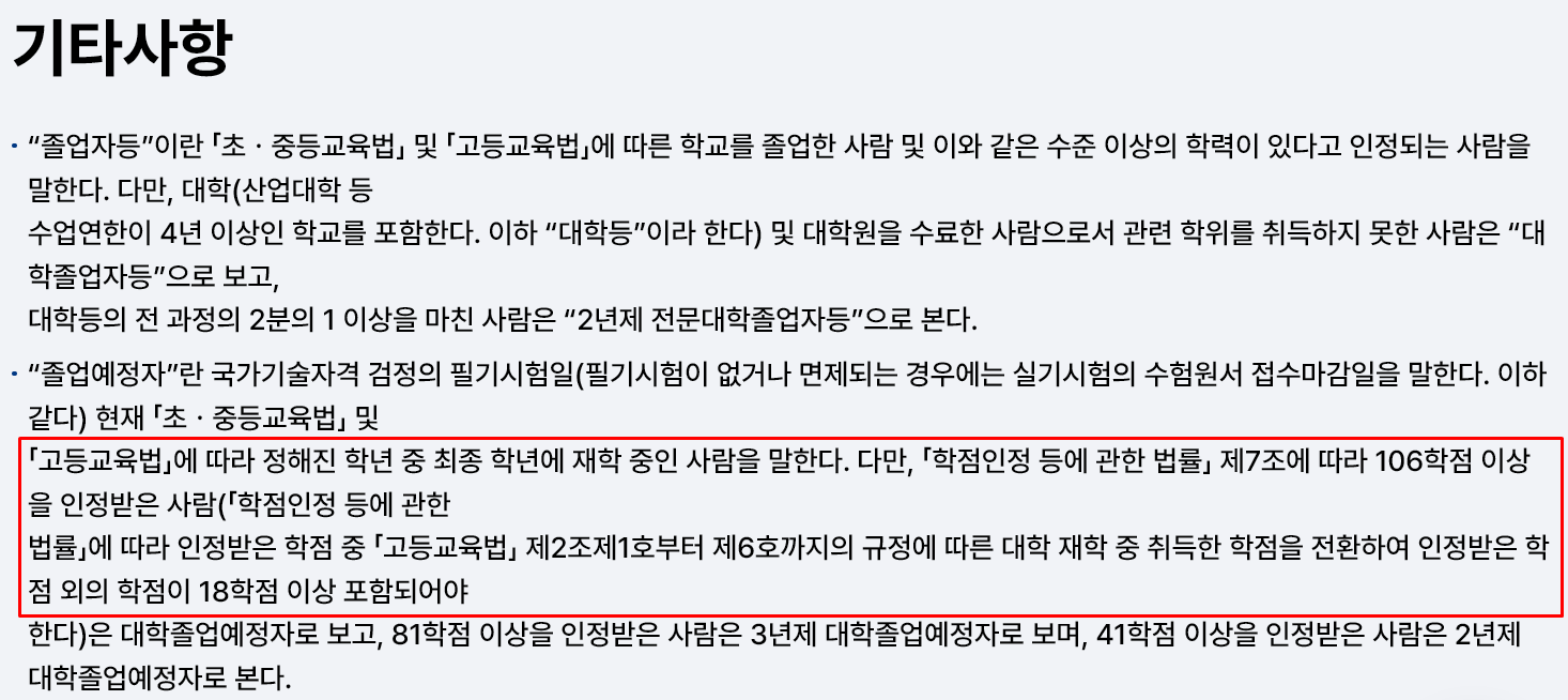 산업안전기사 응시자격은 학점은행제를 통해 106학점을 이수하여