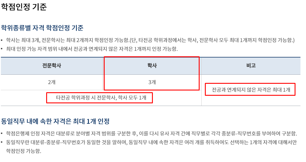 일반 학점으로 인정받는 자격증은 하나만 활용하실 수 있습니다
