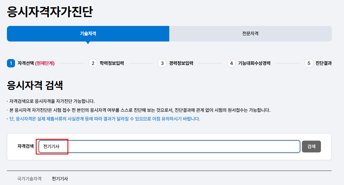 3) 자격검색 전기기사 입력
