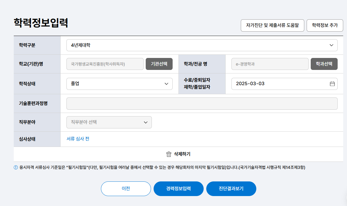 2) 응시자격 자가진단