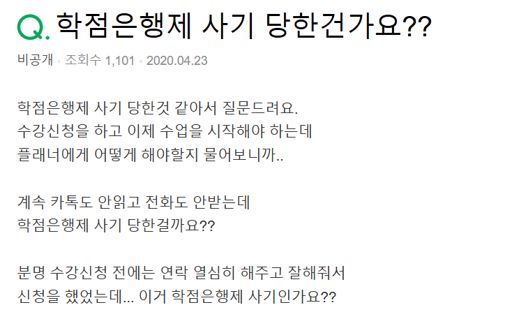 실제로 지식인에 올라온 학습자분들의 멘토 사기 사례입니다.
