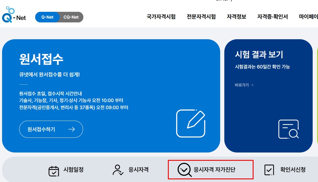 큐넷 홈페이지에 접속하신 후 응시자격 자가진단을 통해